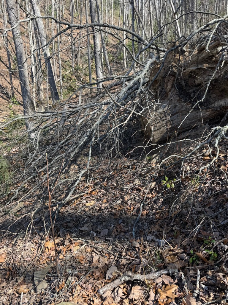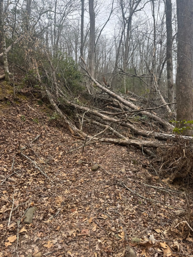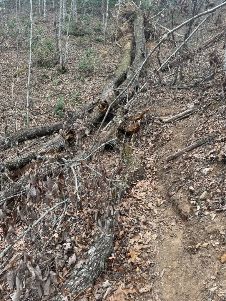 This section (and the next) are entirely in the park and while the trail was pretty good (better than south of here), there were a lot of blow-downs (trees fallen over the trail).
