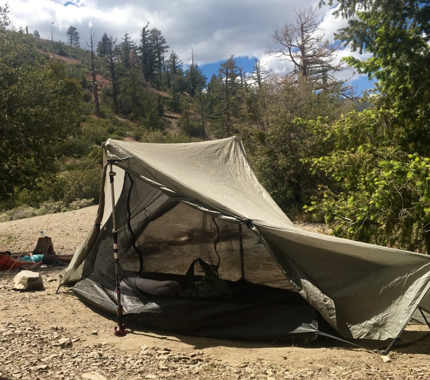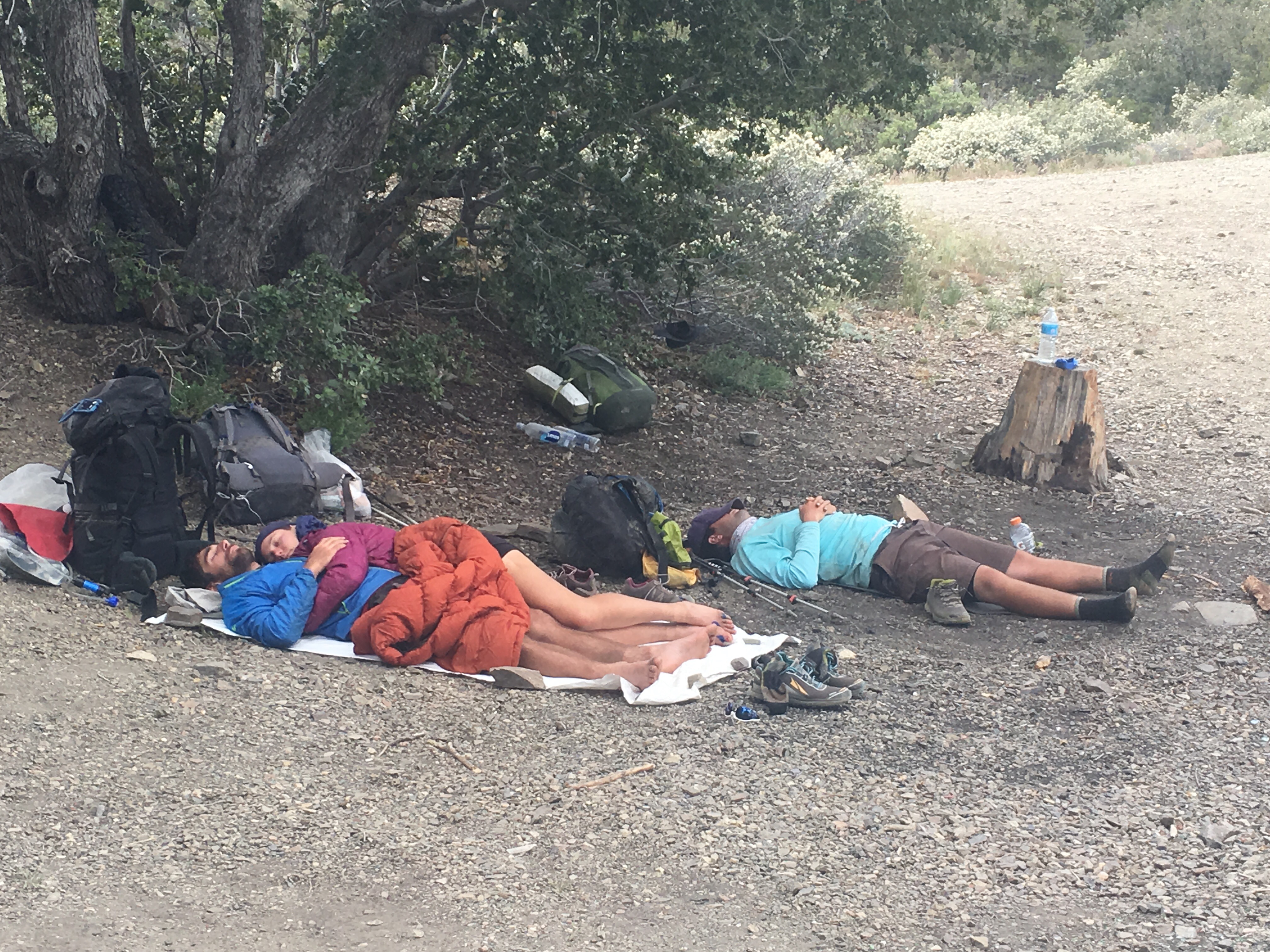 Did 15.5 miles the first day before camping at a popular stopping spot (shade/flat). Lots of hikers stopped for a quick nap before heading down the trail. This is a common approach – hike until lunch or it gets hot, stop for a nap, and then hiking after it begins to cool down a bit.
