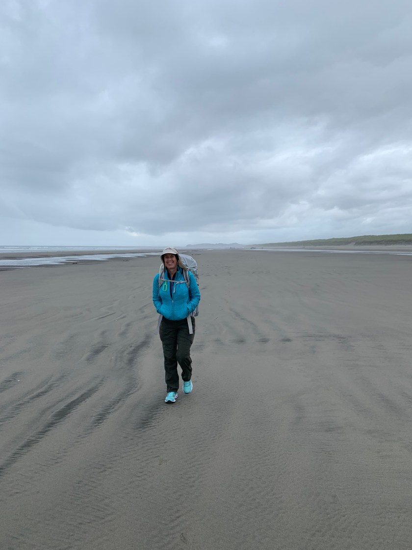 Because we hiked a couple of miles yesterday just to check out the beach we only (only!) had to do 15.5 miles today and it was all flat. The first 13 miles or so were on the beach. A bit chilly to start (55 and windy) but the sun came out after a bit.