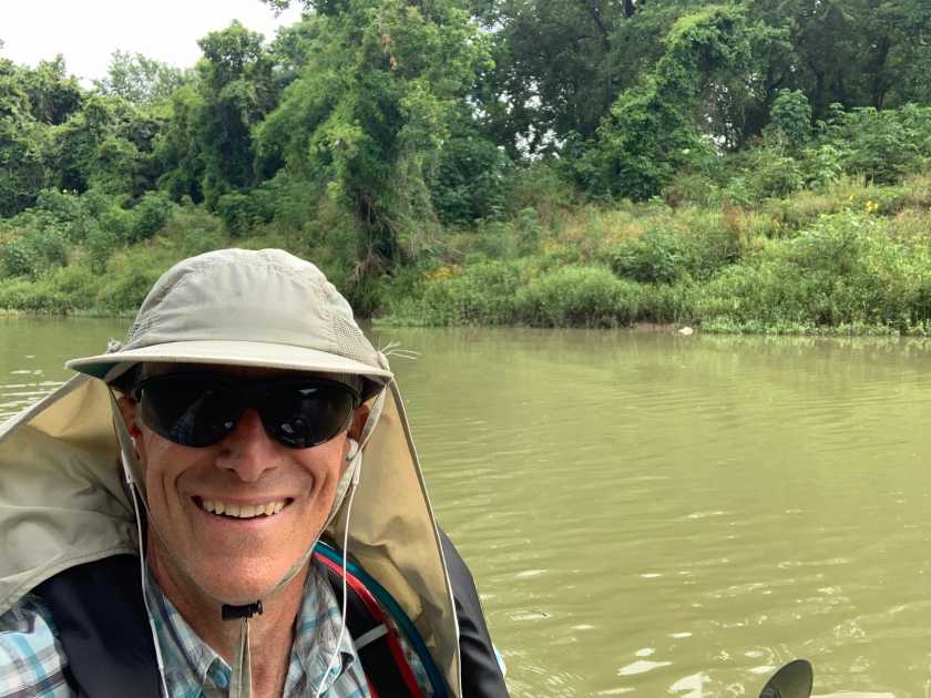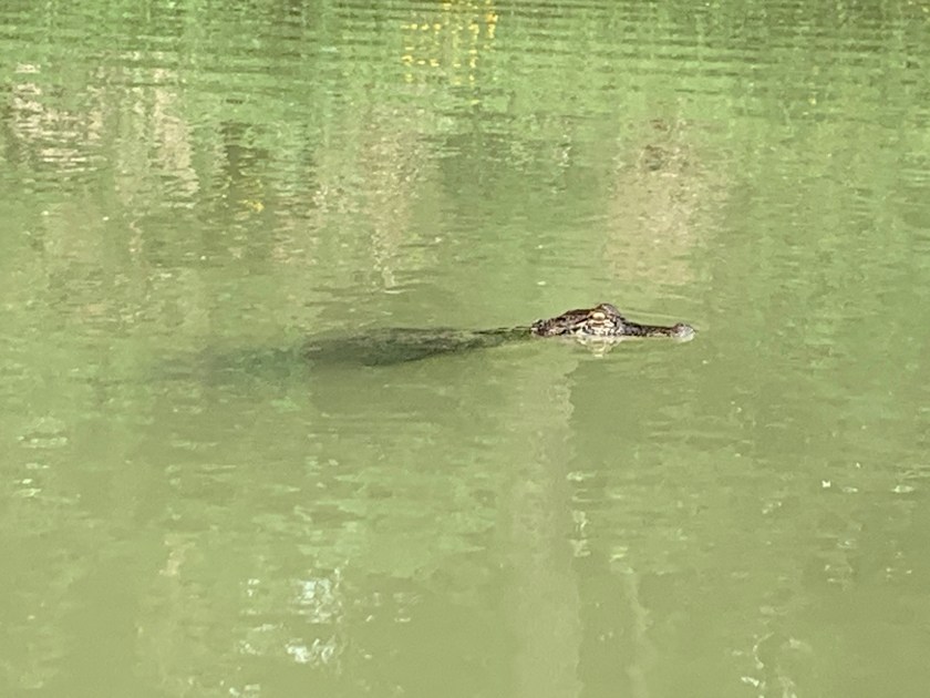 Greens Bayou is the wildest of the Houston Bayous. It is wide, deep and has lots of wildlife as it winds it’s way south to join Buffalo Bayou about five miles west of north Galveston Bay. I saw two alligators – did not get a picture of the second one as I was too busy paddling away!