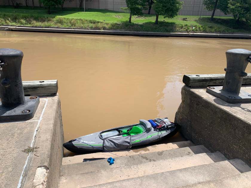 After about 10 miles of so White Oak Bayou empties into Buffalo Bayou just across from Allens Landing. I paddled over and pulled out. Buffalo Bayou was moving well from all the recent rain. Then a short walk to the UH Metro station and heading home.