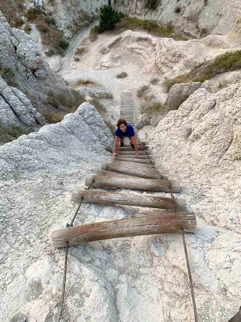 The trail is less than two miles round trip but the sign warns that it is difficult and can take up to 1.5 hours to complete. We did it in 40 minutes with lots of stops for pictures but it was a lot of fun and…. there was a ladder to climb!