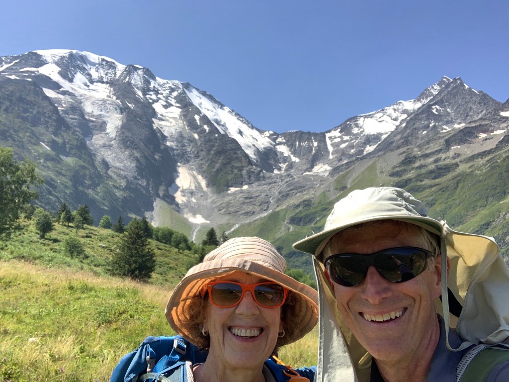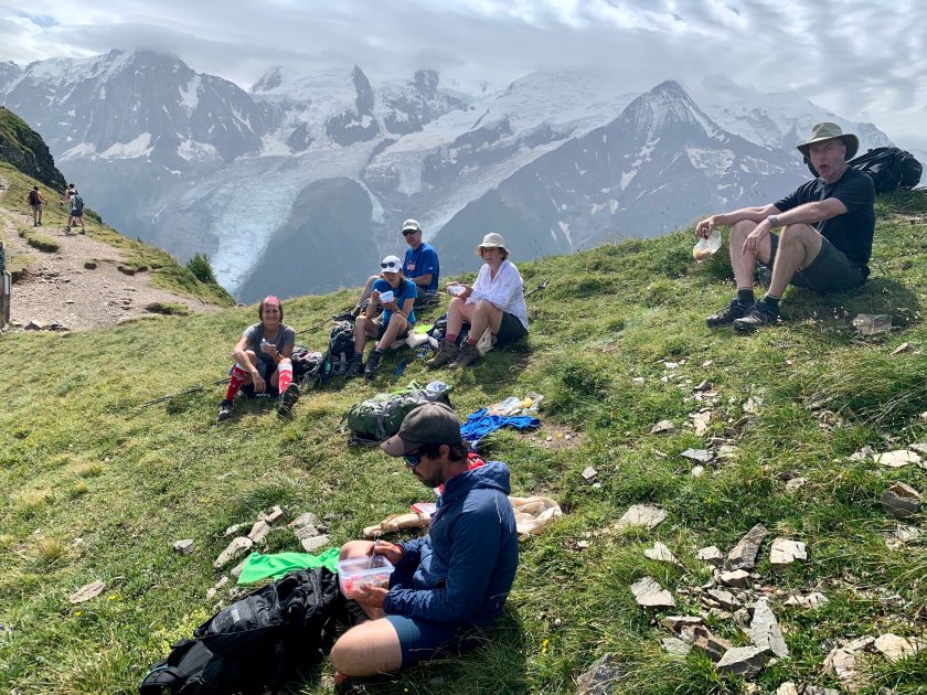 Our first day of hiking the TMB was relatively easy – we split into two groups – the “fast” hikers and the “slow” hikers. Somehow Bert and I got in with the faster hikers which meant a longer hike. We did not do the traditional TMB route for this stage but did a higher alternate that had great views of the Chamonix valley and Les Houches.
