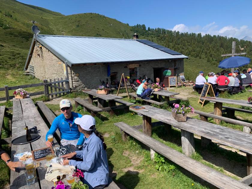Last day! And we are feeling great! Beautiful weather and feeling a little sad that it will all soon be over. A very short, 6 mile day but… still 3,000′ of ascent over the first three mile. Ahhh…. Les Alpes.