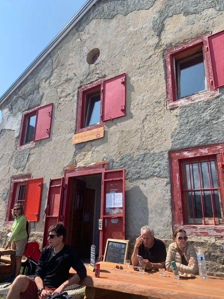 Near the top of the climb we stopped at the Alpage de Bovine, a small restaurant, for lunch. Julien ordered several plates of Rosti for us to share and it was delicious. Basically potatoes and cheese so you can’t go wrong. And this was also one of our first stops on the Haute Route back in 2017.