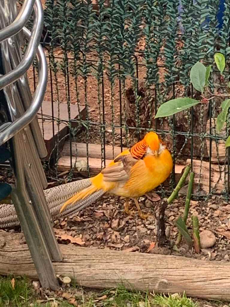 After three hours we stopped in a busy pilgrim town where three trails come together, Puerte de Orbigo, for breakfast (and coffee!). The place had some very interesting birds hanging around.