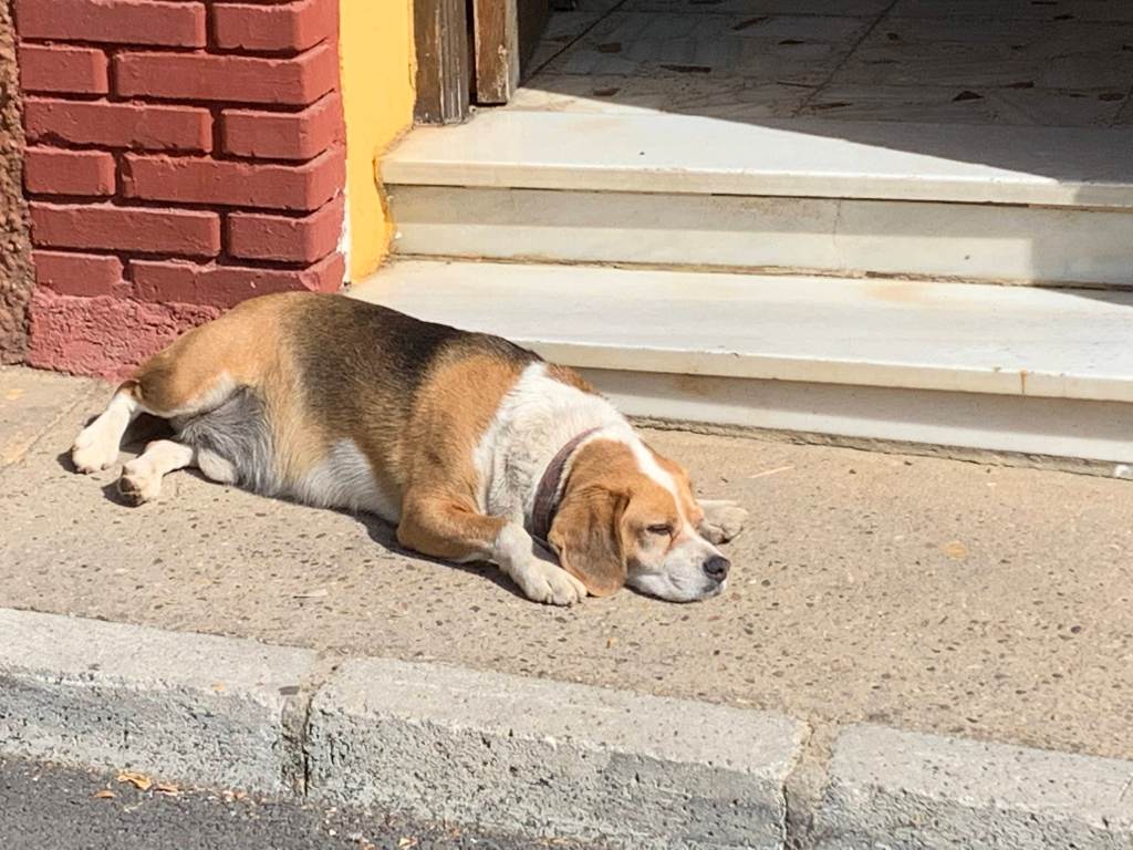 The church is closed but the bar was open…though guarded by a vicious dog.