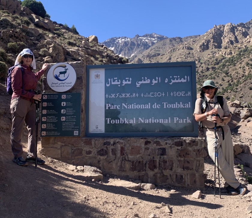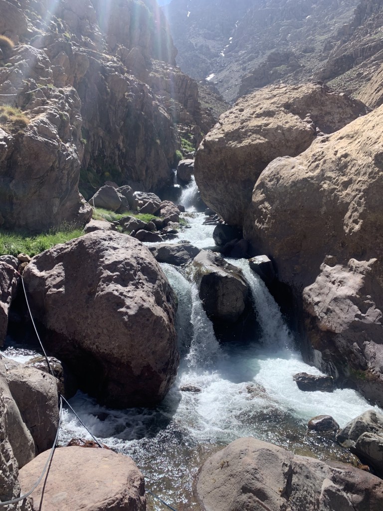 Big day as we climb to the refuge for the climb tomorrow to the summit. This is a 4,000′ day. We started at 9:00 with a couple hundred foot drop to the valley floor just south of Imlil then we started up.