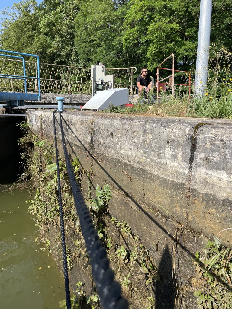 Sorry I haven’t posted for awhile. We’ve been battling a weedy canal (i.e. repeated prop foul), recalcitrant locks and, for several exciting days, a boat that would not go in reverse (reverse being a handy feature when piloting your 34-foot vessel into a concrete space 15 feet wide and 100 feet long). Cheers!