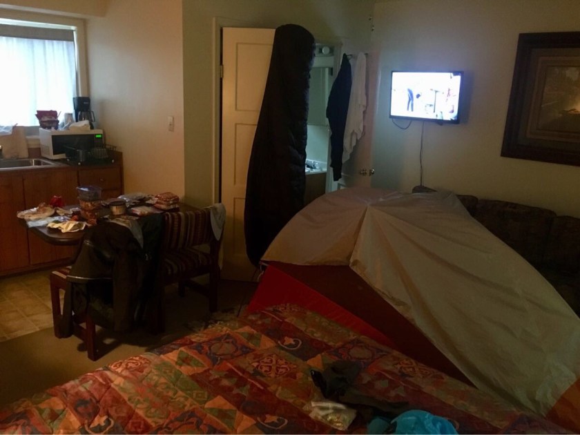The day started around 4:30 when I woke up and left my cozy warm tent to search for the cat hole I had dug the afternoon before to relieve myself. Then back to my tent to brew some coffee, eat some breakfast and do a little reading. Over the next hour or so I would work on my feet (put on band-aids/mole skin where required), put on my hiking clothes and began packing everything up. By 6:00 AM I was out of my sleeping bag and deflating my pad and stuffing my pack. Then out of the tent and taking it down (usually still with my headlamp on as it was still dark). The tent fly was usually wet – either from condensation or from rain so I kept the packed tent on the outside of my pack.