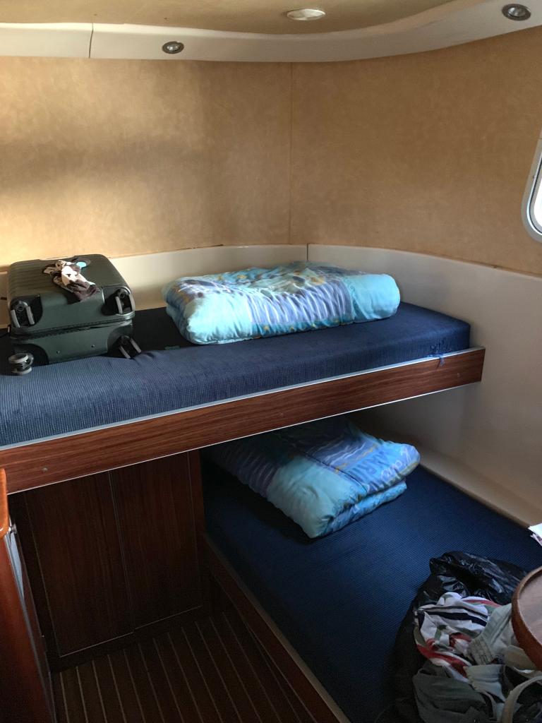 As the spec shows, Decize has three berths and two heads. The fore head is an integrated shower/head/sink. The aft head is split into two small rooms, a toilet room and shower/sink room.