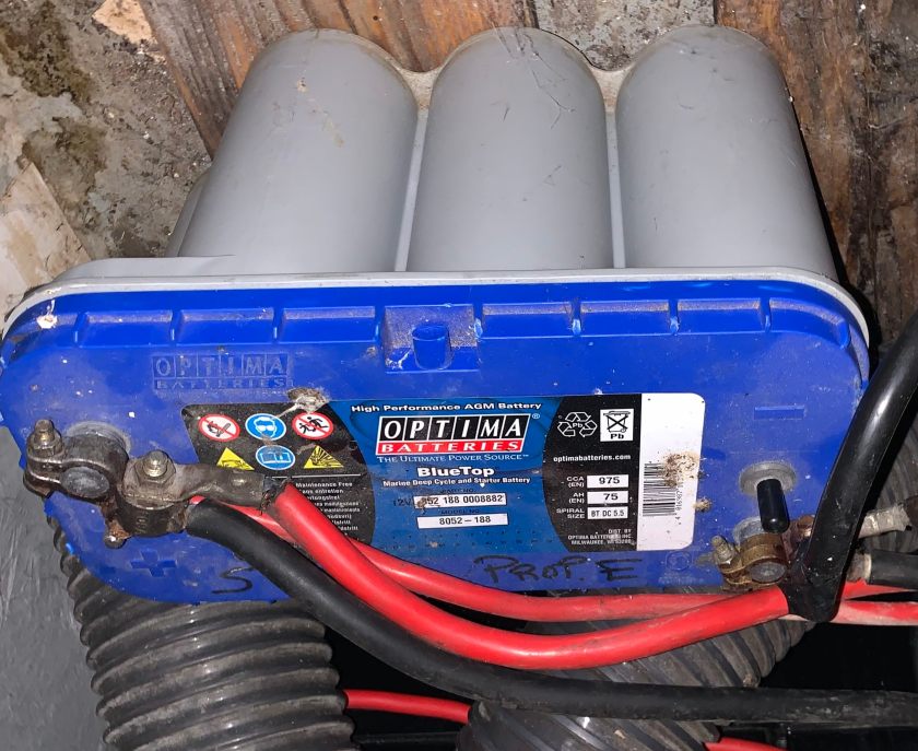 I haven’t figured out all of this yet, will have to wait till the coming summer trip. As typical there are two battery banks, a house battery and an engine starting battery.