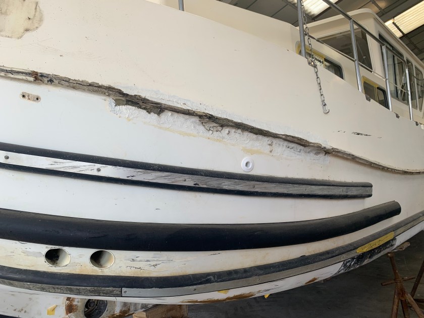 Decize is over 20 years old so is in need of quite a bit of mostly cosmetic repairs. We have asked for a quote to clean and repair the hull, replace the rub rail, and re-paint the hull and superstructure. We had planned for this but had expected to be there to discuss the work in person.