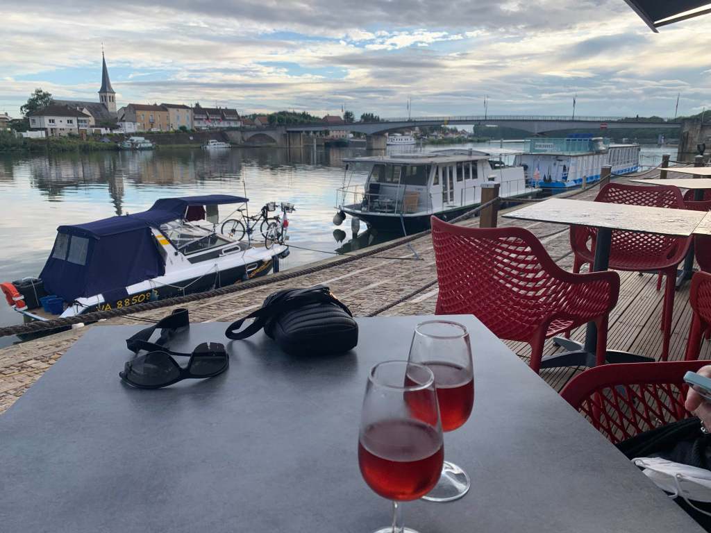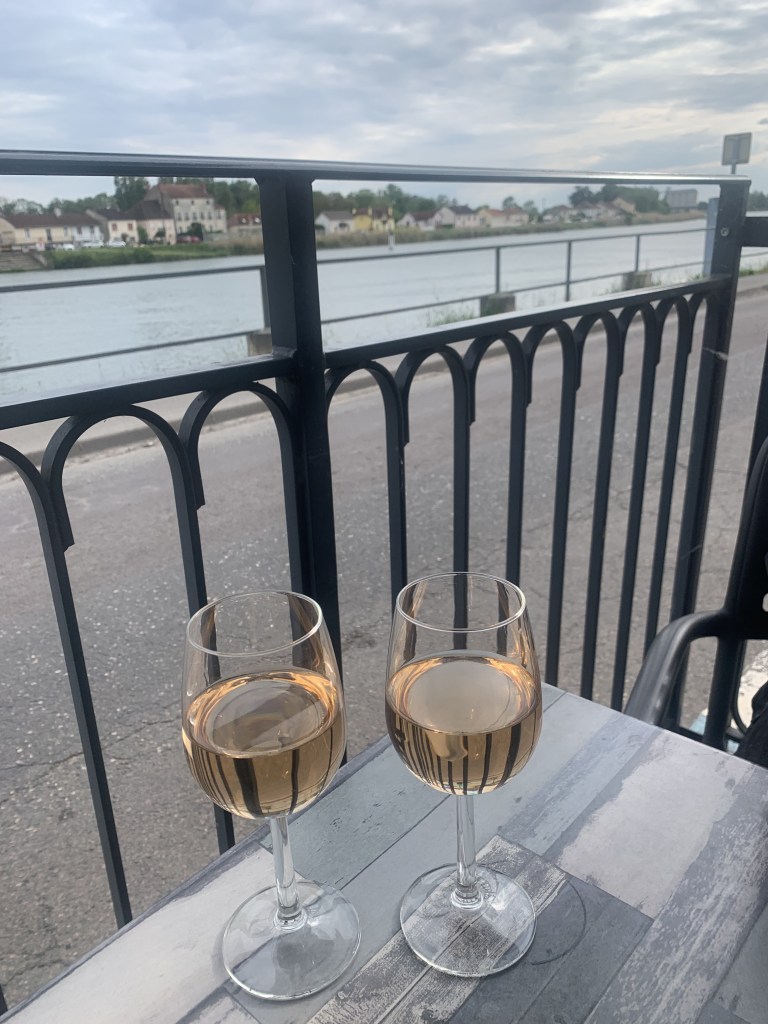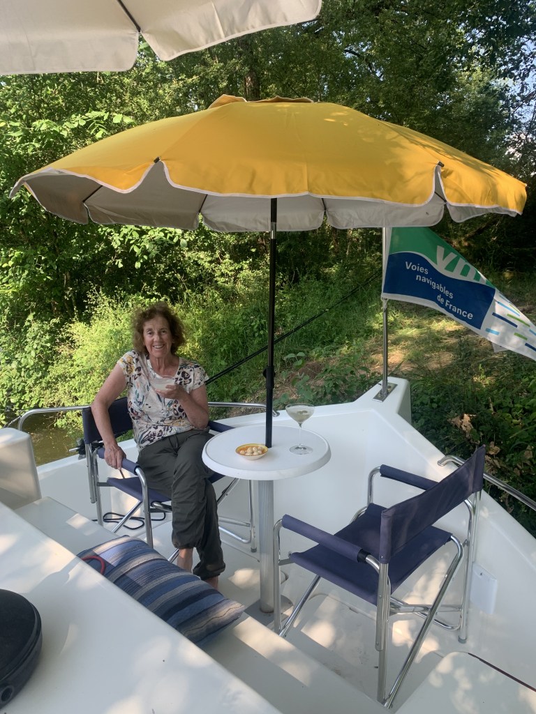 And it was even hotter in Besançon so we found a spot off the boat to set up chairs for our evening cocktails and dinner.