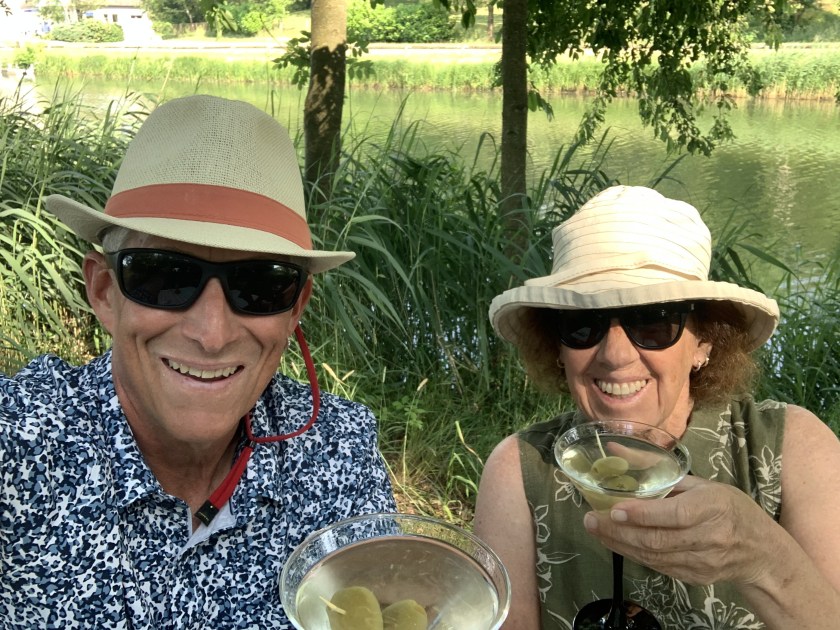 Sorry I haven’t posted for awhile. We’ve been battling a weedy canal (i.e. repeated prop foul), recalcitrant locks and, for several exciting days, a boat that would not go in reverse (reverse being a handy feature when piloting your 34-foot vessel into a concrete space 15 feet wide and 100 feet long). Cheers!