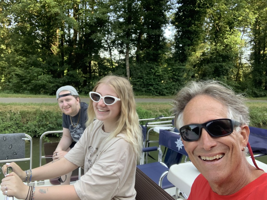 My brother, John, his wife, Christin, and their two children, Connor and Sofey, arrived on July 2. We decided to take them up one of our new favorite canals (Canal du Rhône au Rhin). The first 100Km or so of the waterway moves in and out of the Doubs River and is quite lovely.