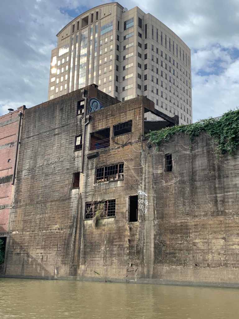 As I neared downtown the flow slowed to almost no noticeable movement and the concrete ended. It got prettier and harder. Typical.