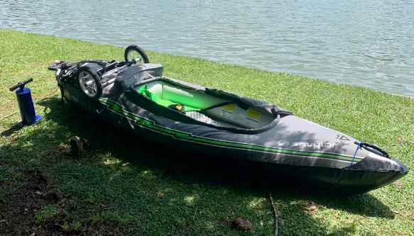 The kayak is great. It does not track as well as a standard kayak and rides a bit higher but it is perfectly adequate. And it is a really cool design. The pack turns into a quite comfortable seat. The included paddle is a bit cheap but works alright if you are careful with it. The pump is very light and pumps on both strokes so the three kayak chambers are quickly filled.