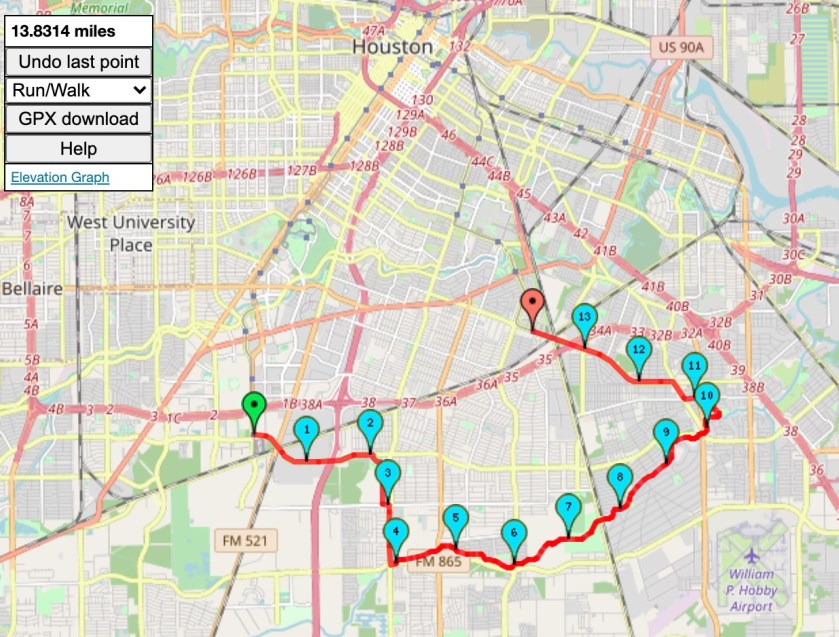 For my first attempt at a “channelized” section of a Bayou, I picked Braes Bayou from just inside Loop 610 back to Hermann Park. Large swaths of Houston Bayous were turned into concrete ditches in the middle of the last century for flood mitigation (the efficacy of which is open to debate).