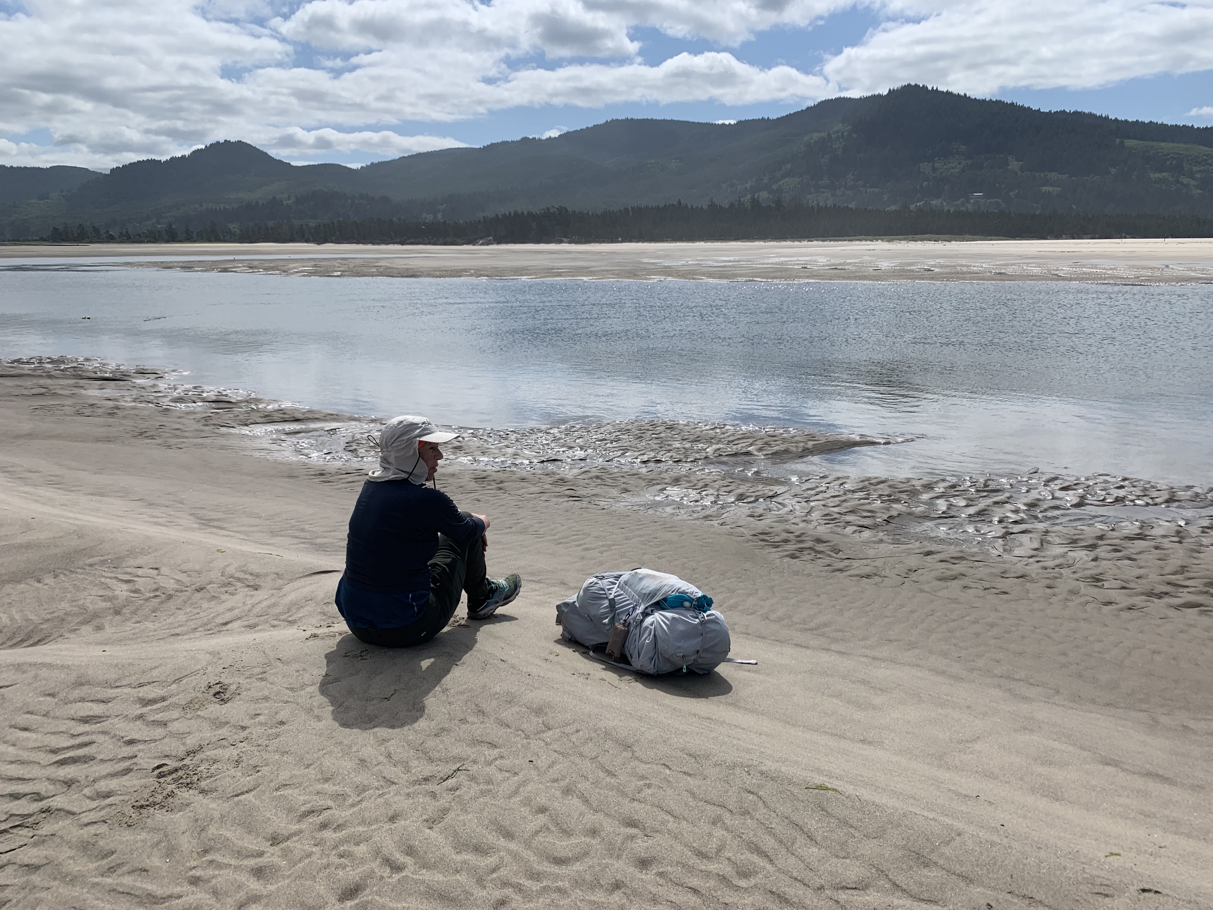 Looking at my maps, I foolishly thought there might be a simpler way to get to the Highway 101 Alsea River Bridge from the beach via the Waldport KOA. After scaling a nearly vertical sand cliff and ending up in someone’s backyard we realized there isn’t. Follow Henderson’s directions – they are the best way to get to the bridge. Lesson: Pretty much every time I thought I knew better than the guide, I was wrong.