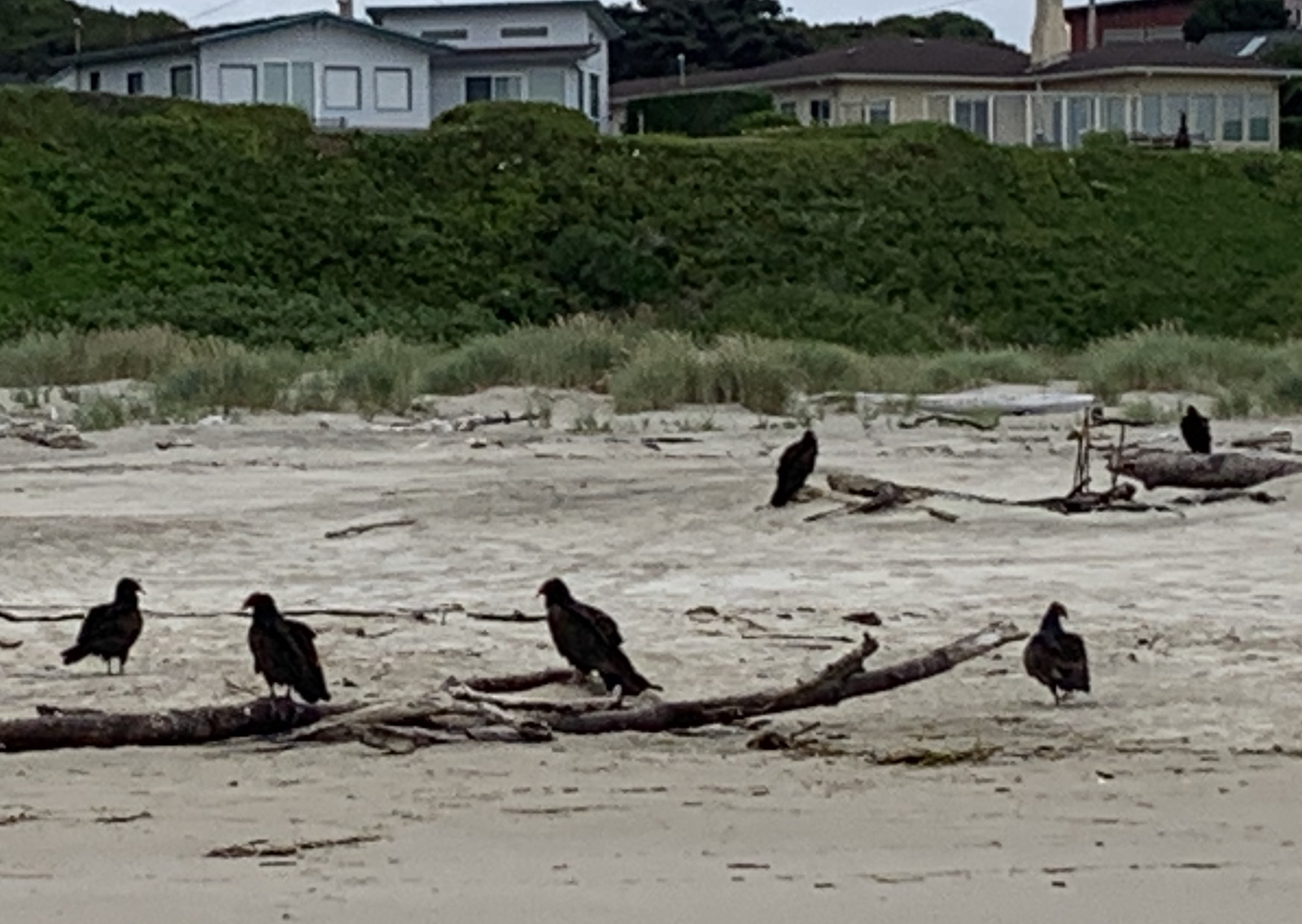 After walking the highway shoulder for a couple miles (the portion south of Cape Perpetua campgrund) we were supposed to “find a way to squeeze between houses and get back to the beach” (Guide, p. 157). We tried but found nothing but fences, “no trespassing” and “beware of dog” signs. We even tried getting to the beach at an RV Park (Sea Perch RV) but got rousted by the manager who kicked us out. This turned a highway-beach-highway section into a 5-6 mile highway section. Maybe there is a way to get to the beach but we could not find it. And we hate highway sections. The last 2.5 miles were particularly bad with narrow shoulders.