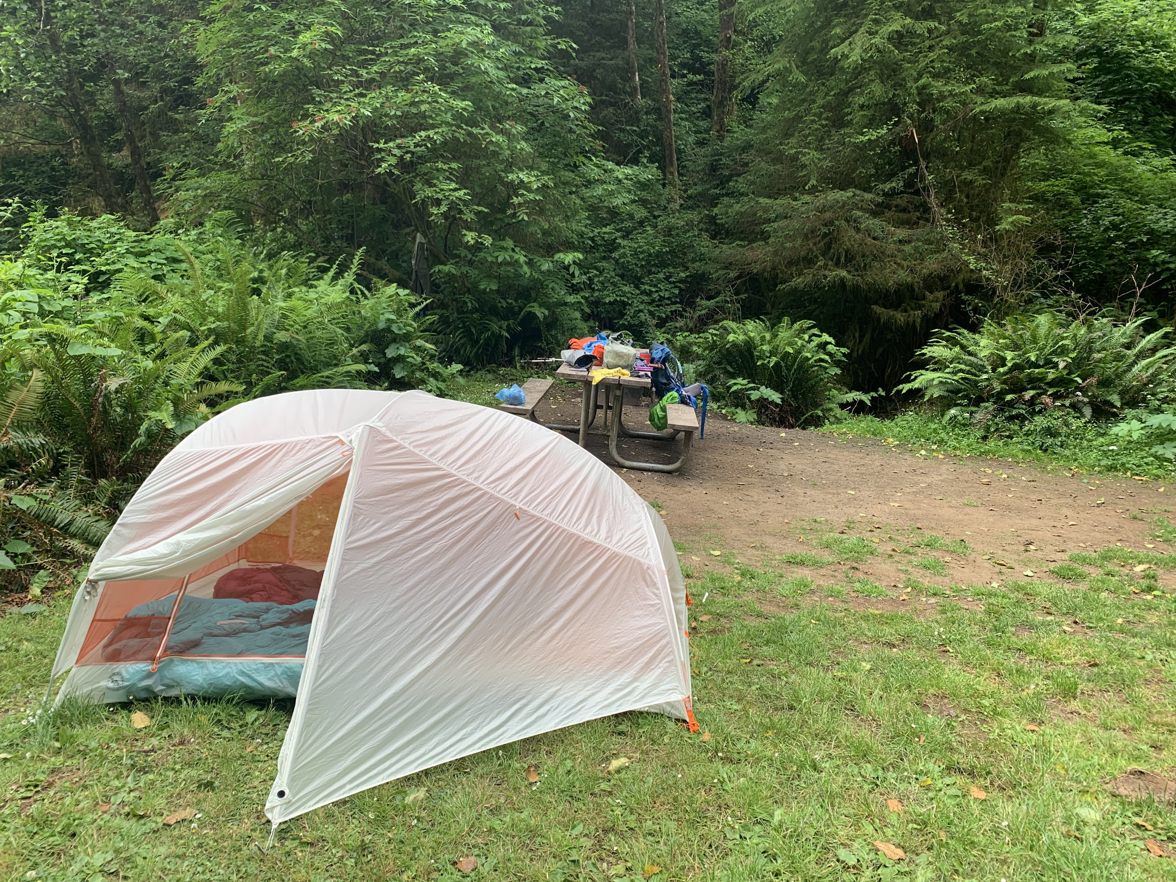 From Humbug Mountain to Nesika Beach there is a lot of highway walking. We elected to take a taxi for most of this (to Honey Bear RV – just opposite the Ophir Rest Area). We can recommend Honey Bear as a nice place to stay – they have a dedicated tent camping area, a restaurant (only open on the weekends) and a limited store.