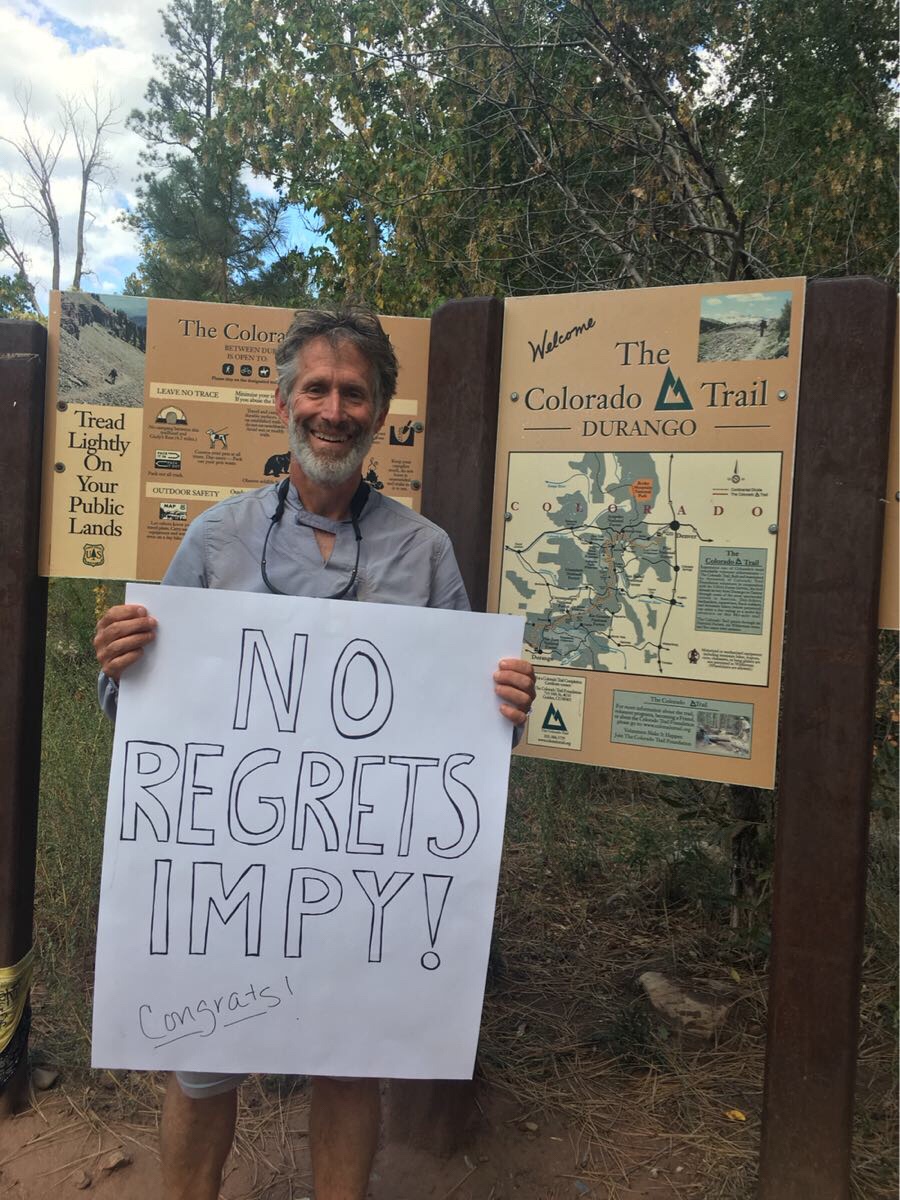 After 34 days of hiking, 5 rest days (zeroes) I reached the Durango Colorado Trail terminus on noon on Monday, September 17 to be met by my lovely wife. I left the northern trailhead on August 10. It feels a bit strange not to be planning for another week of hiking.