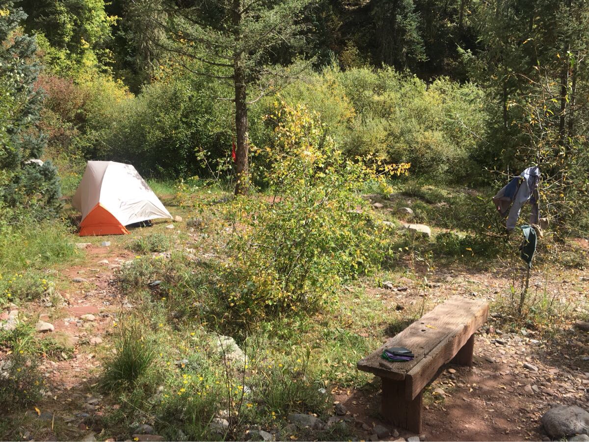 My last camp site near Junction Creek. And a bench!!! Luxury!