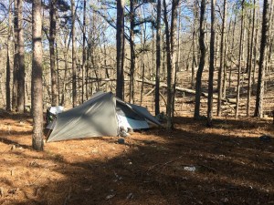 Left the shelter about 9:00 after the rain let up. Pretty short day – only 10 miles after yesterday’s 16. Another shelter night (Brushy Creek Shelter) – fourth in a row! Stopped at Brushy Creek CG for lunch and managed to dry out the tent and wash some pants.