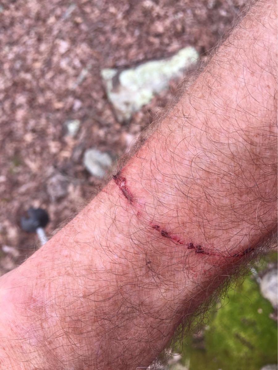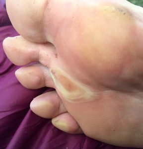 Well, after two years and 223 miles (134.5 this year) we completed the Ouachita Trail. Met some nice people, saw some lovely views, crossed (and re-crossed!) some fine streams and had (at the end) absolutely beautiful weather. We finished tired and happy. Oh… here is the requisite blister pic..