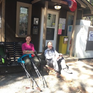 Slept well in the shelter – there was enough room on the sleeping platform so we were able to set our tent up next to Emerson – made it just a little bit warmer. Not as nice today – in the 40’s and overcast. Had our rain gear on most of the day. Camped at Story Creek Shelter.