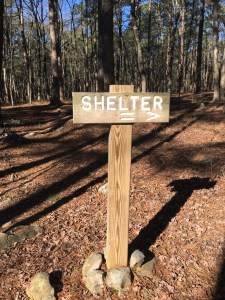The shelters are wonderful by the way – three sided wood structures with a sleeping platform and (luxury!) a picnic table!