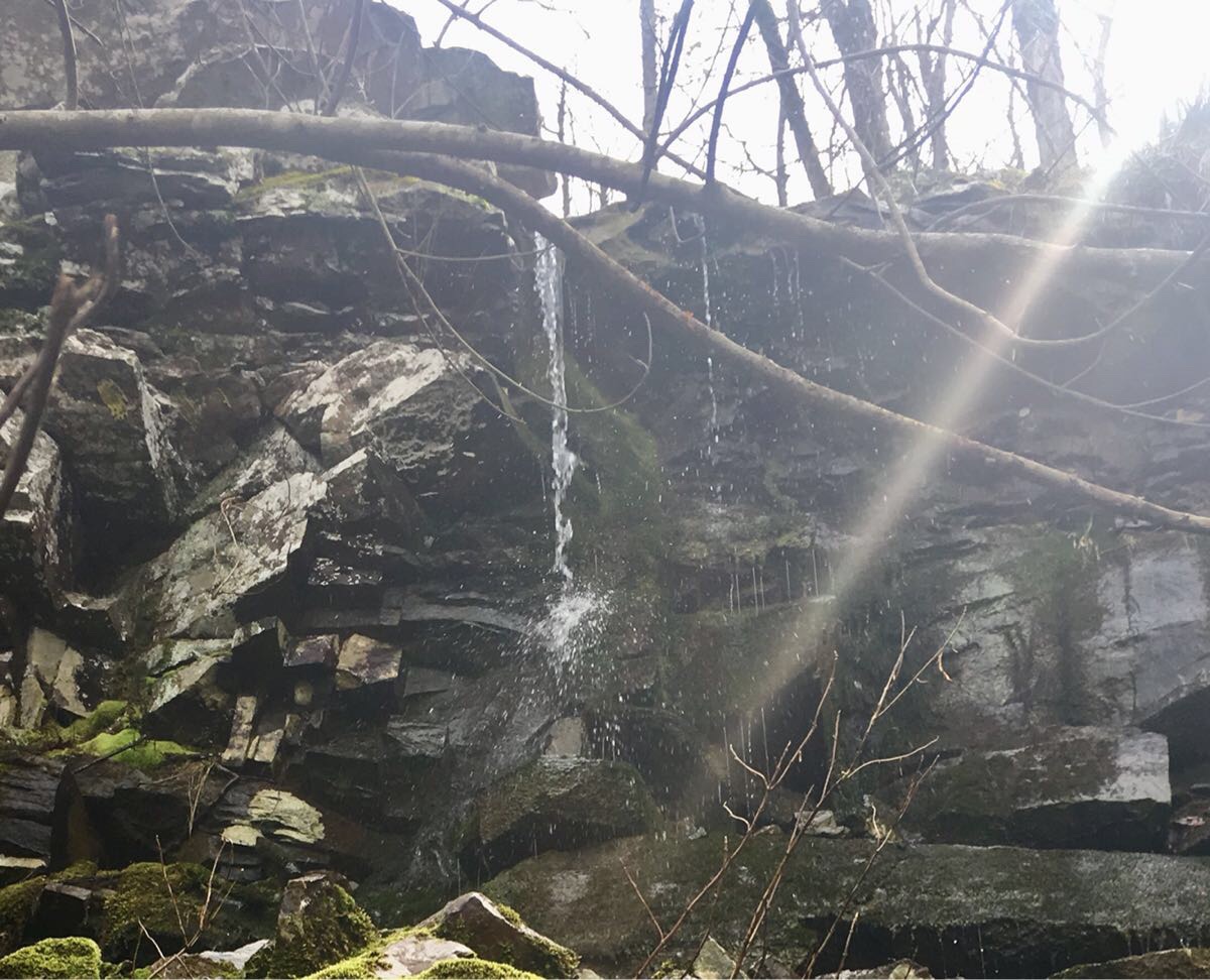 Woke to a light rain which we waited out. Finally stopped around 8:45 and we started hiking. Met three section hikers heading east just past Tan-A-Hill spring. Stopped for lunch at Foran Gap Shelter, drying off our tents. Three east bound thru-hikers from Ft Smith showed up and we visited for a bit. Unfortunately I left my hiking shirt there. Darn! Got water at a pretty little water fall just off the trail. Unfortunately Emerson ended up losing his dirty water bag somewhere around here.